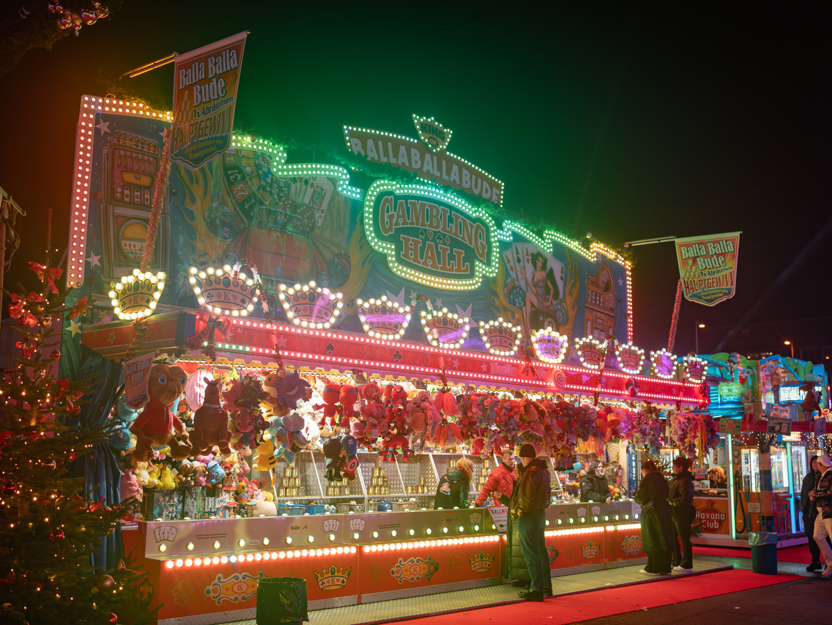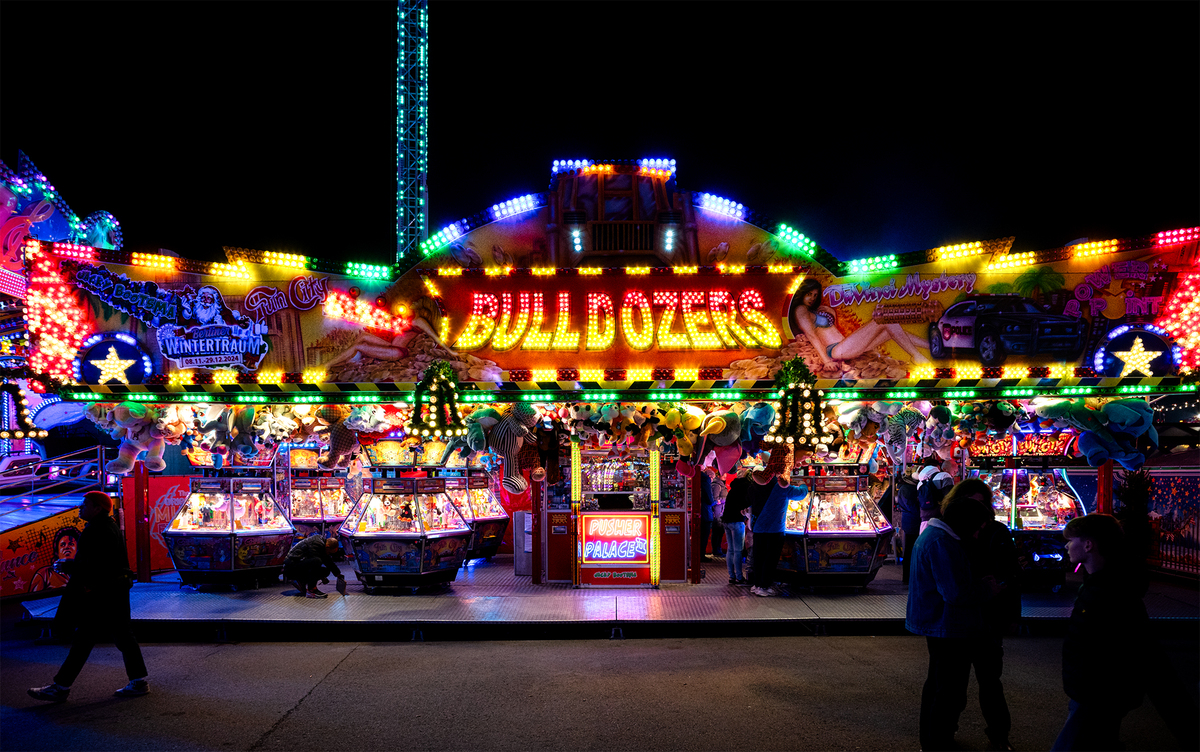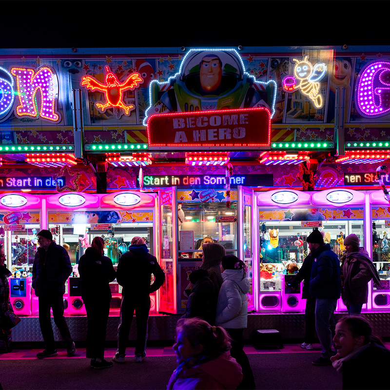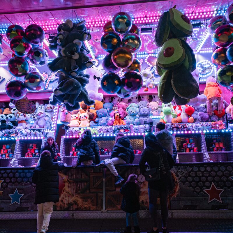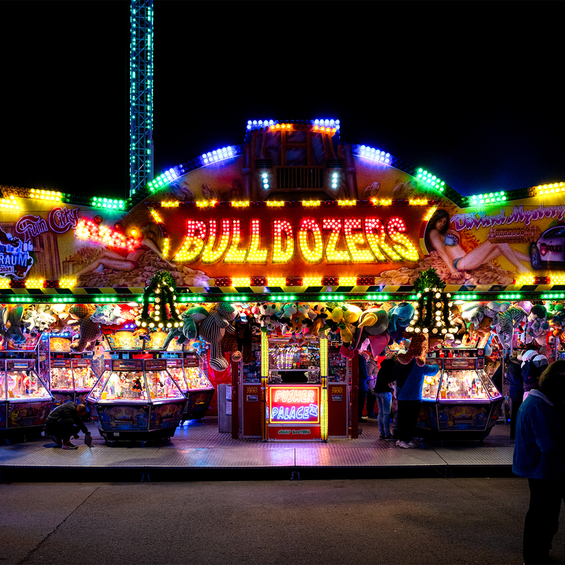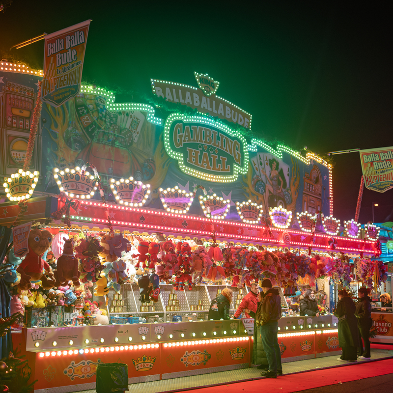 Zum echten Rummelfeeling gehören die Klassiker: Greifautomaten, Lose ziehen und jede Menge Geschicklichkeitsspiele wie Ball- und Pfeilwerfen, Entenangeln, Fadenziehen oder der beliebte Schießwagen. Auch das legendäre Toilettenspiel sorgt für gute Laune! Und wer eine Erinnerung mitnehmen möchte, hält den Moment in der Fotobox fest – Spaß garantiert!